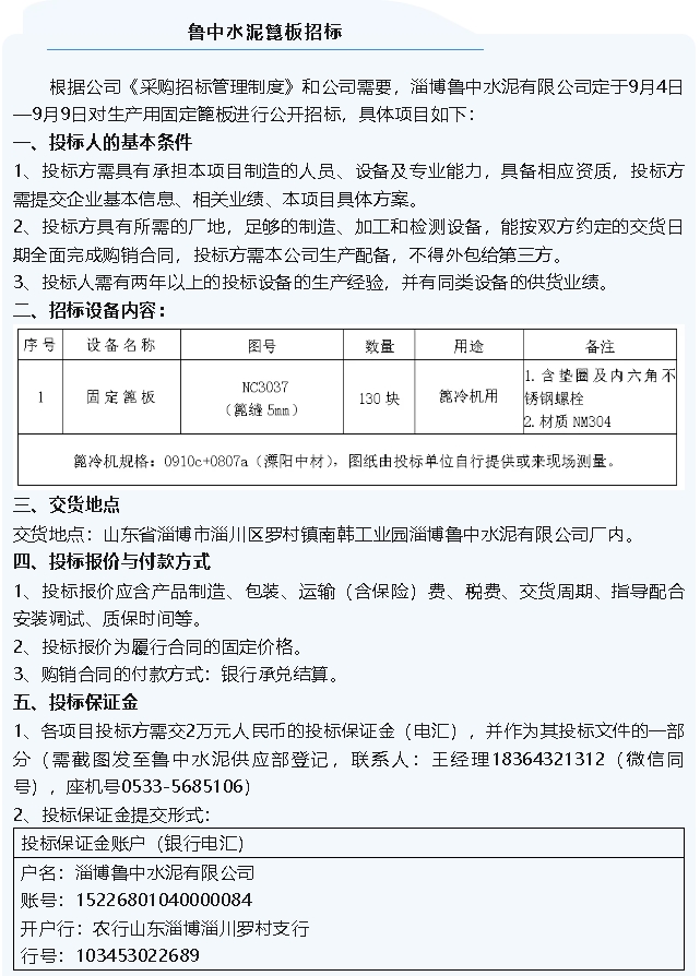 【招標(biāo)公告】集團(tuán)公司、魯中水泥