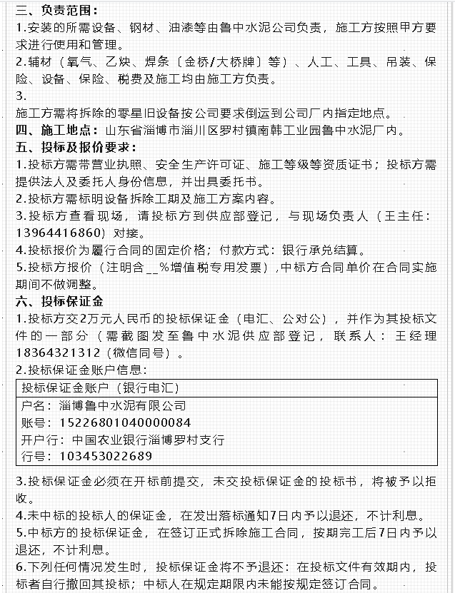 【招標(biāo)公告】魯中水泥