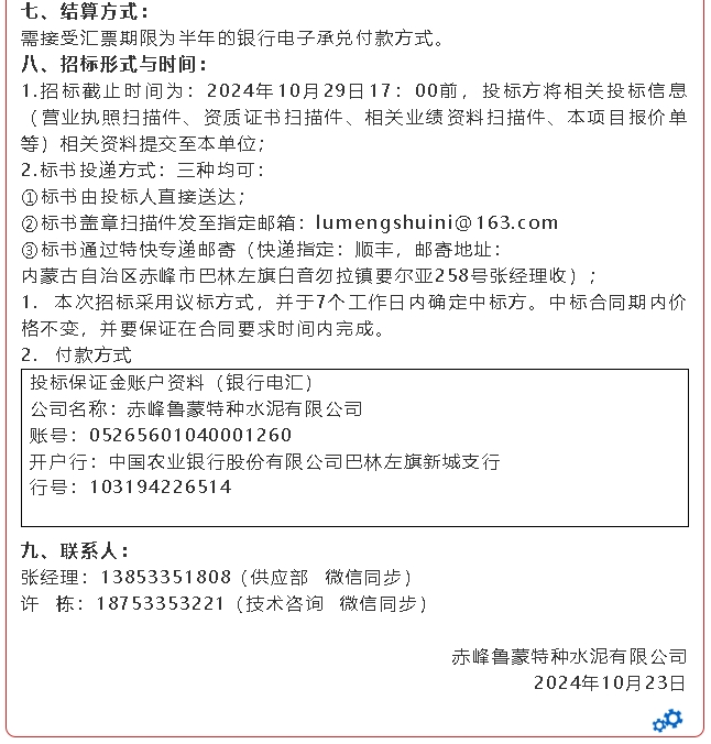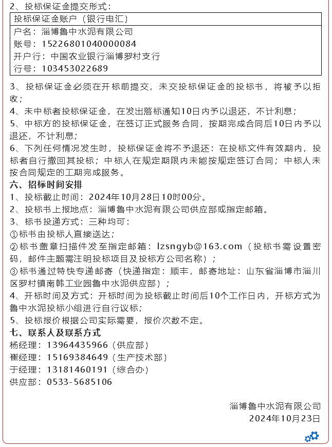 【招標(biāo)公告】魯蒙水泥、魯中水泥