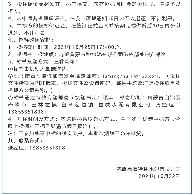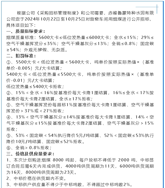 【招標公告】魯蒙水泥
