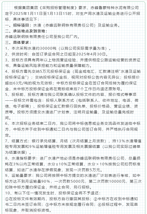 【招標(biāo)公告】魯蒙水泥