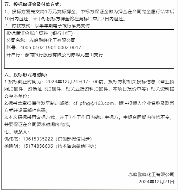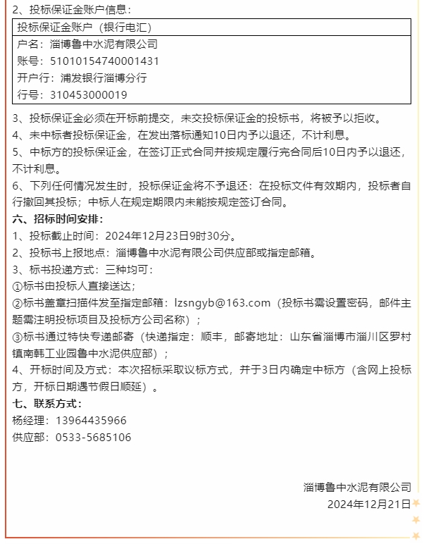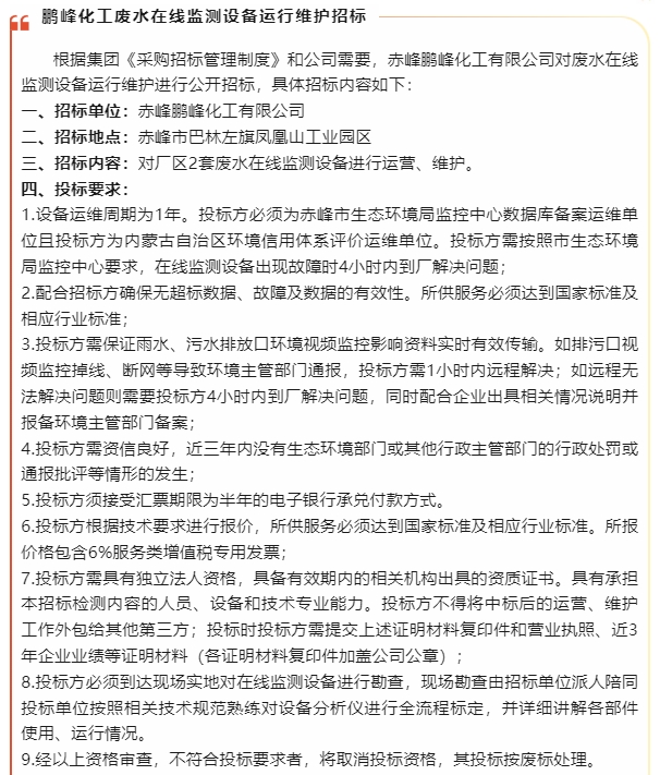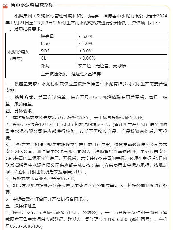 【招標公告】魯中水泥、鵬峰化工