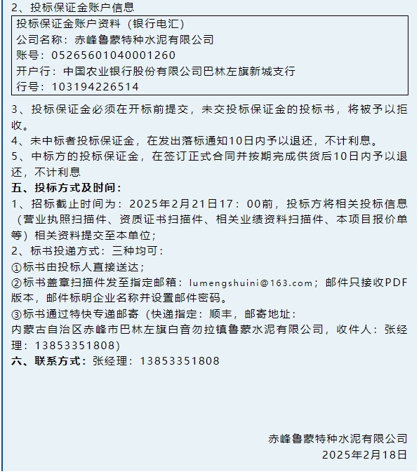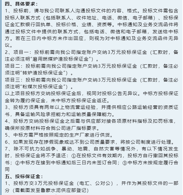 【招標(biāo)公告】魯蒙水泥、魯中水泥