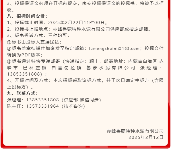 【招標公告】魯蒙水泥