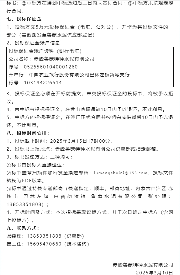 【招標公告】魯蒙水泥