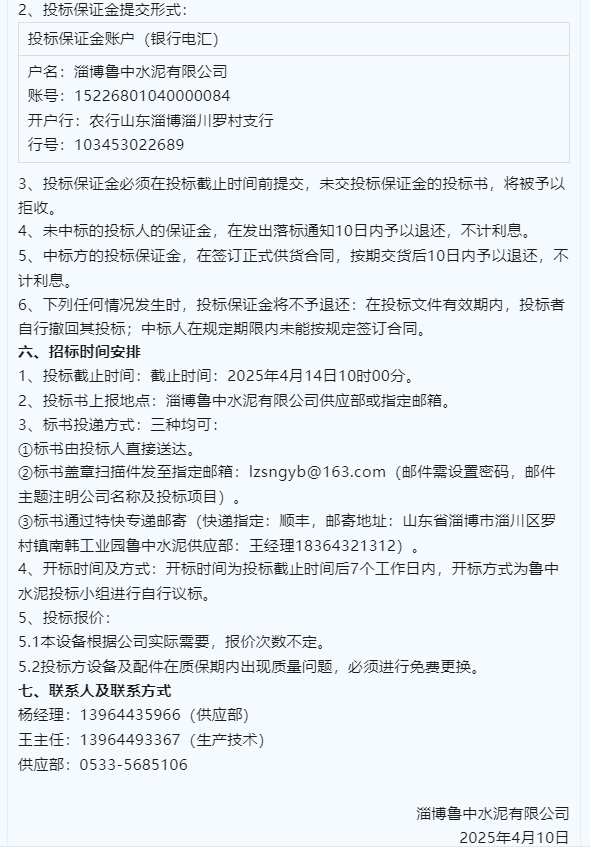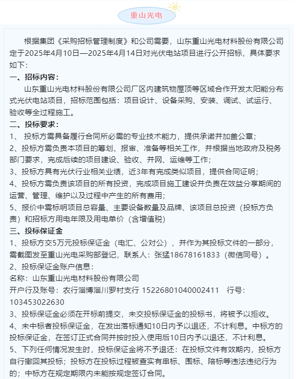 【招標公告】魯中水泥、重山光電