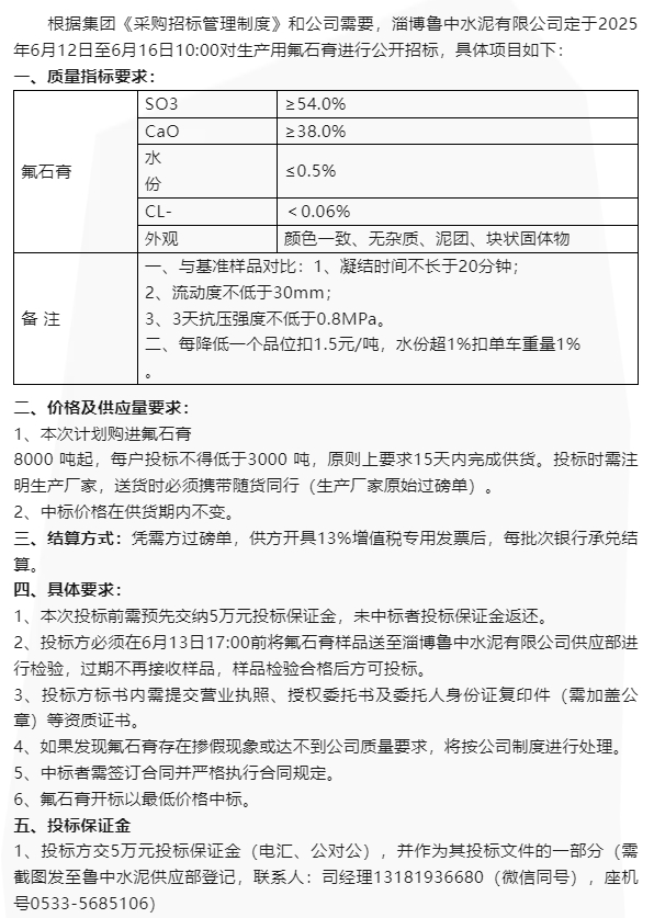 【招標(biāo)公告】魯中水泥