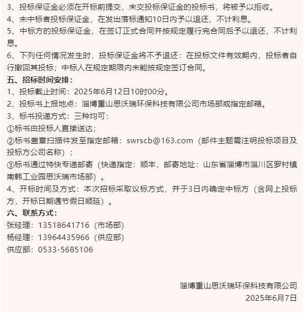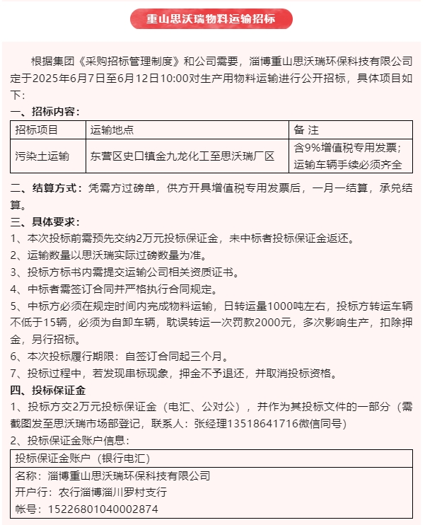 【招標(biāo)公告】魯中水泥、重山思沃瑞