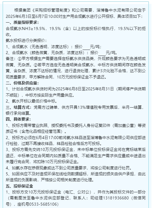 【招標(biāo)公告】魯中水泥