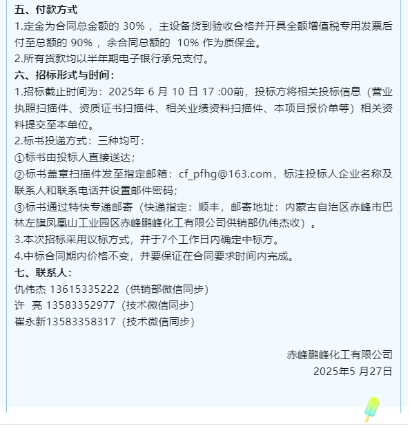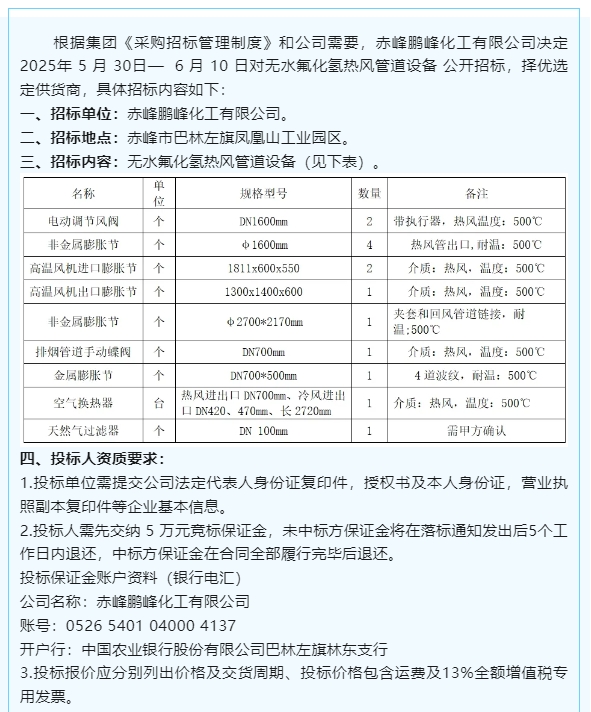【招標(biāo)公告】鵬峰化工
