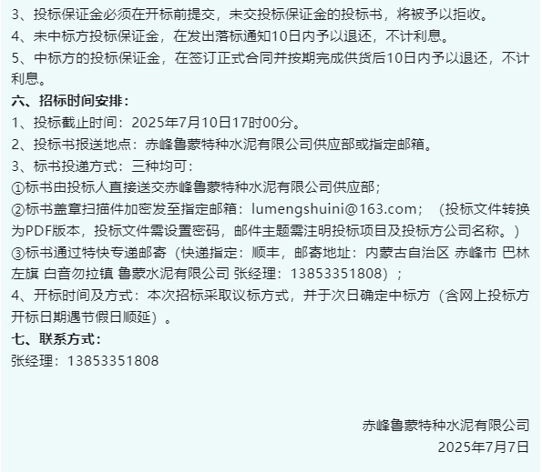 【招標(biāo)公告】魯蒙水泥