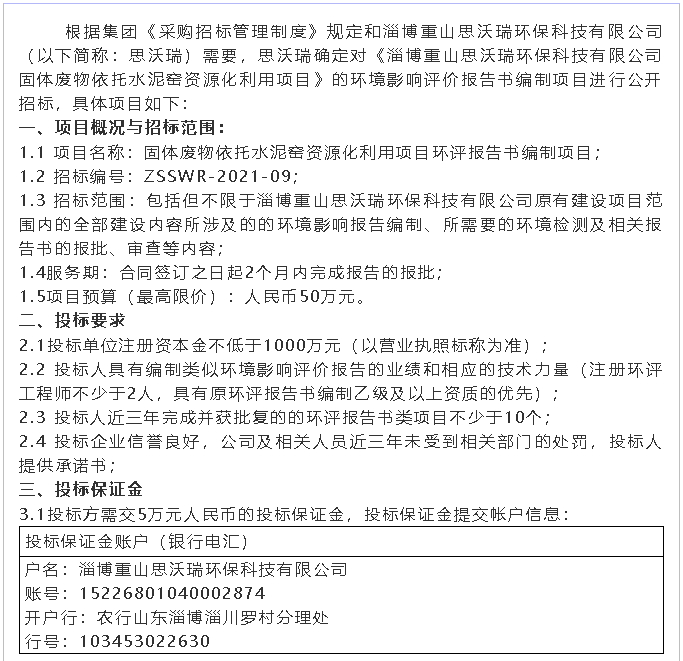 【招標公告】重山思沃瑞