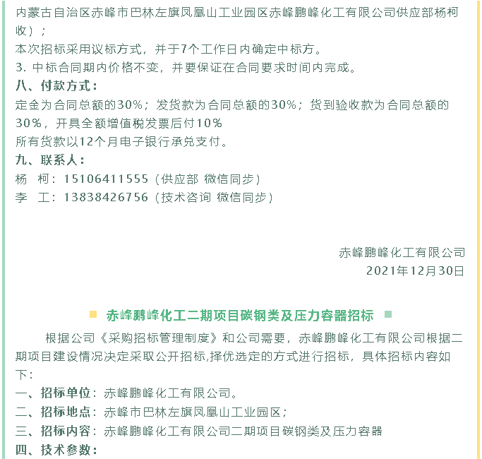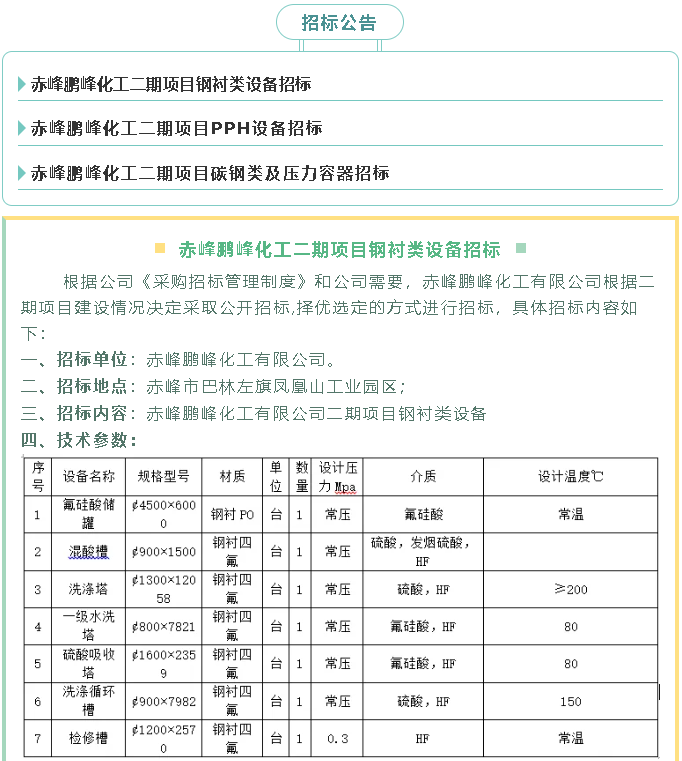 【招標(biāo)公告】鵬峰化工