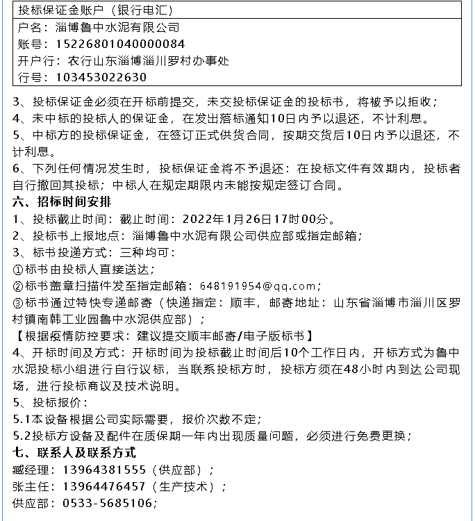 【招標(biāo)公告】魯中水泥