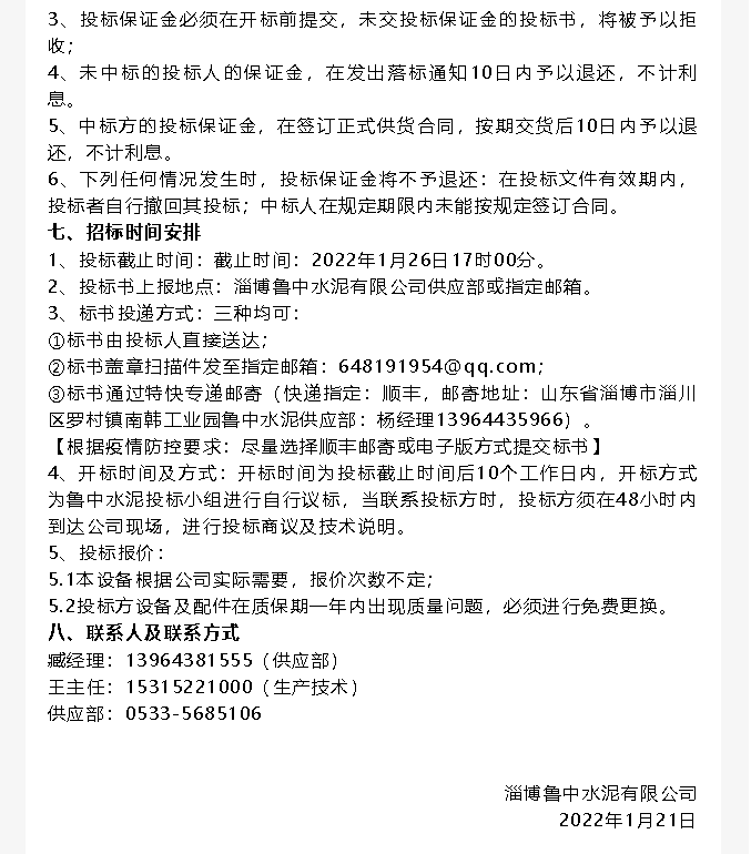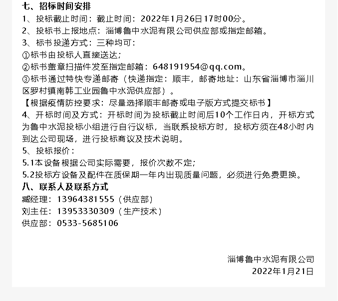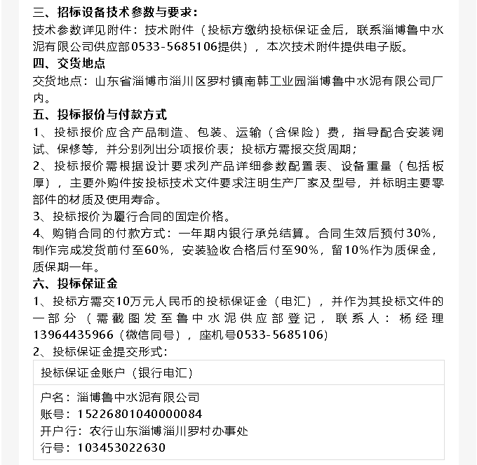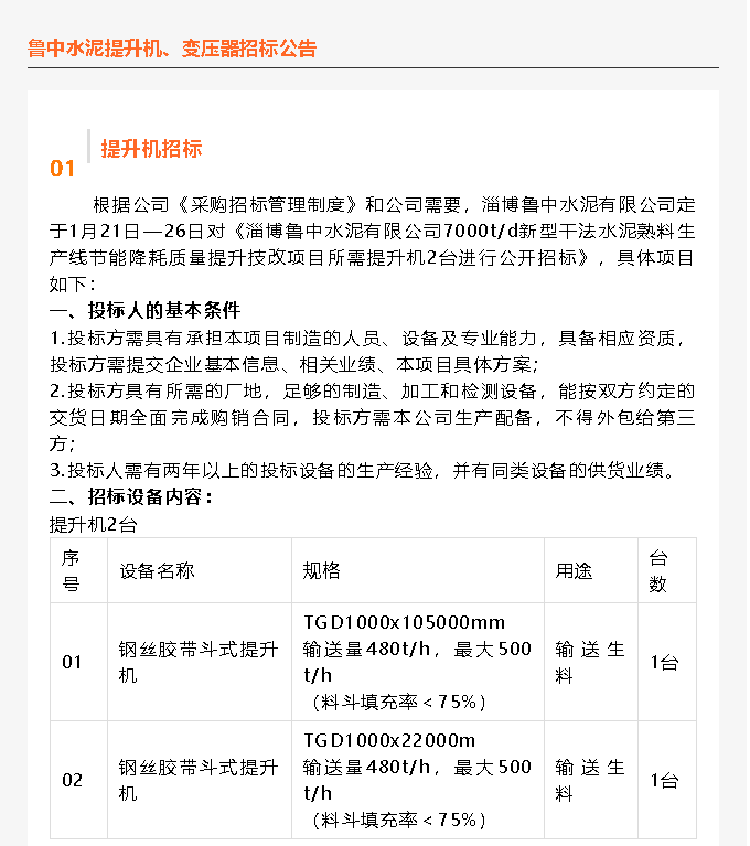 【招標(biāo)公告】魯中水泥提升機(jī)、變壓器招標(biāo)