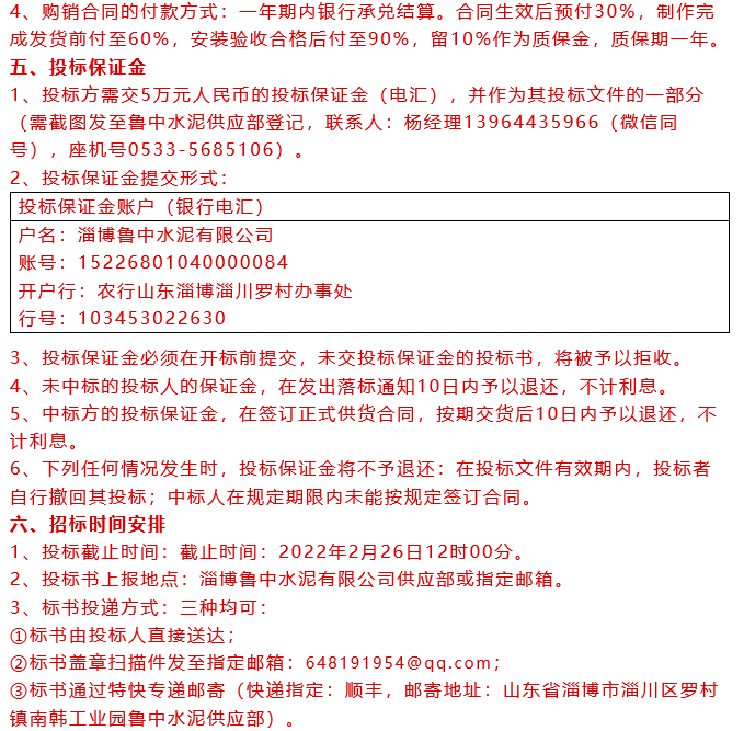 【招標(biāo)公告】魯中水泥