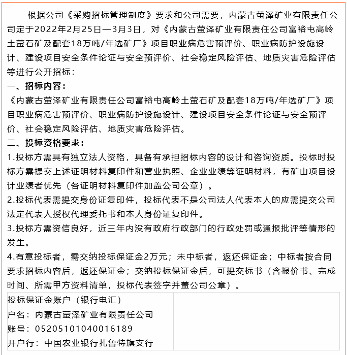 【招標(biāo)公告】螢澤礦業(yè)