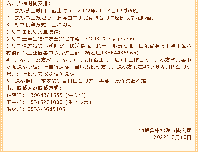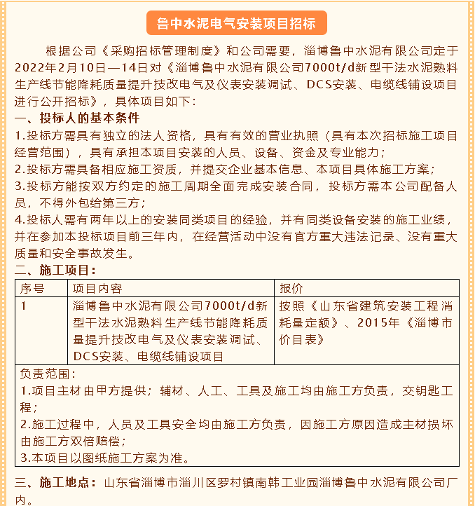 【招標公告】魯中水泥
