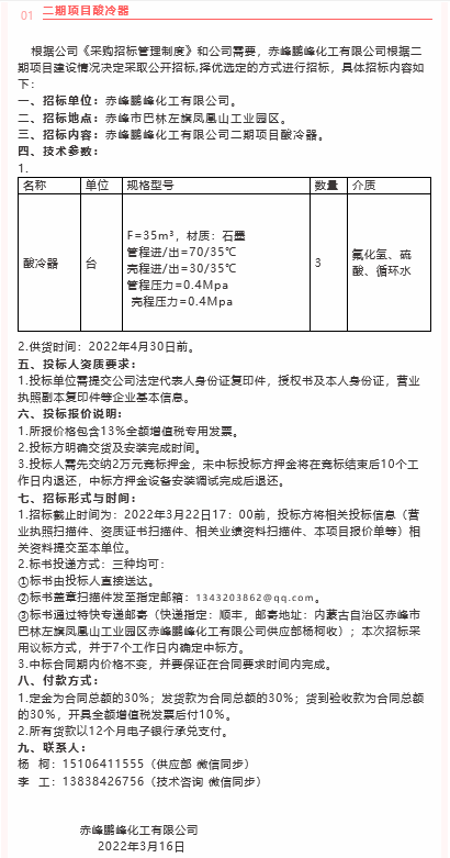 【招標公告】 鵬峰化工