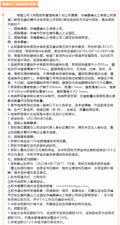 【招標(biāo)公告】鵬峰化工