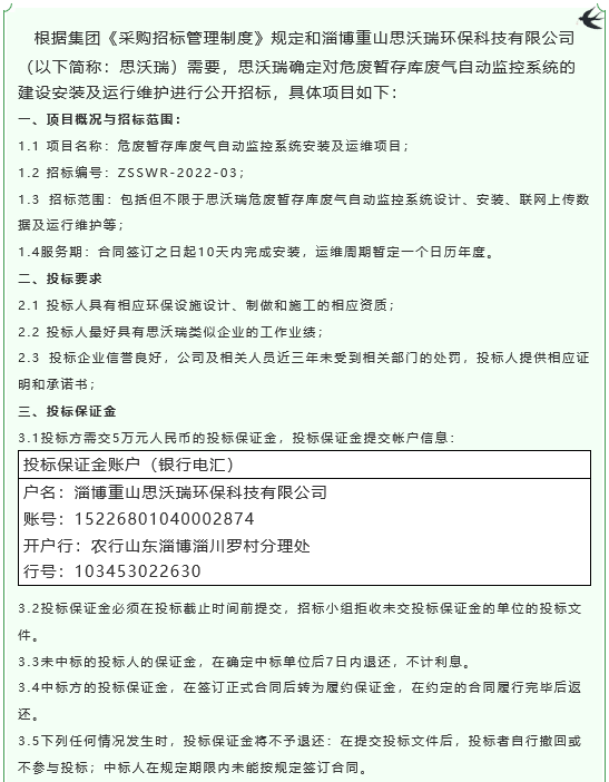 【招標公告】重山思沃瑞