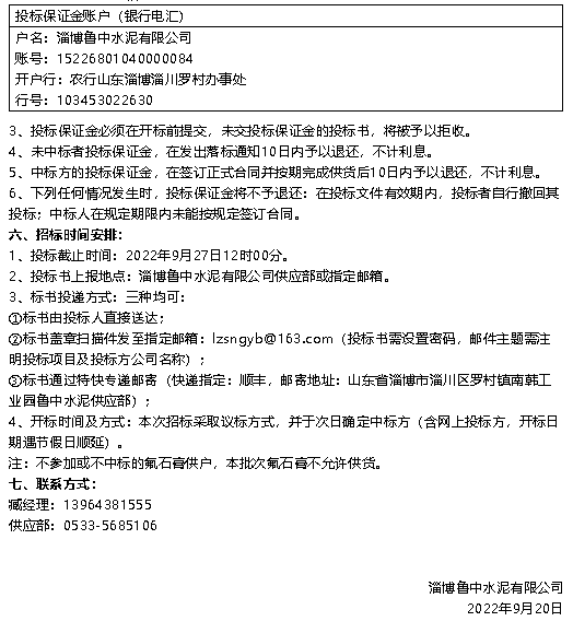 【招標公告】魯中水泥