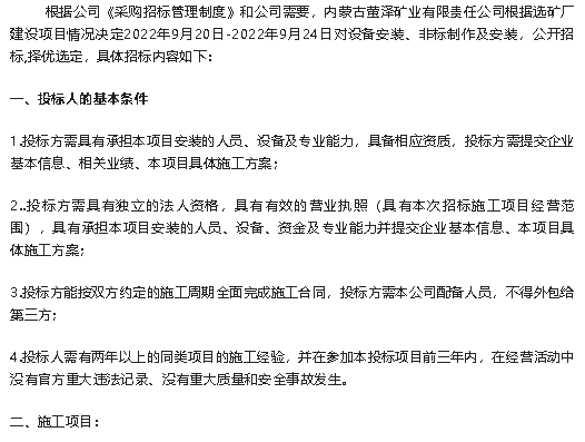 【招標(biāo)公告】螢澤礦業(yè)