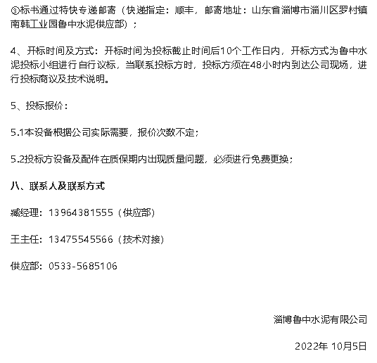 上一篇:【招標公告】魯蒙水泥環(huán)形皮帶秤、轉(zhuǎn)子秤招標,魯中水泥電纜線、旋窯安裝檢修項目招標
