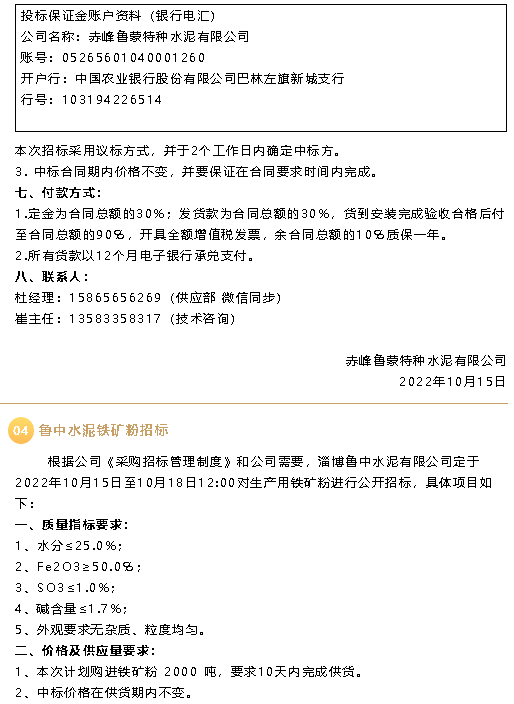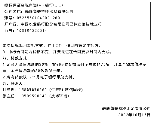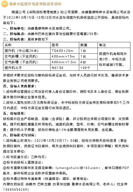 【招標(biāo)公告】魯蒙水泥、魯中水泥