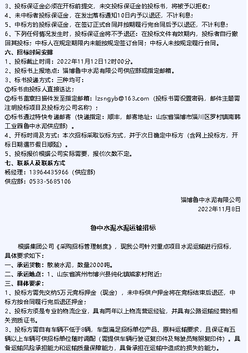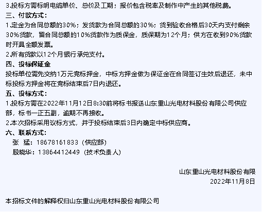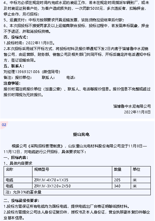 【招標(biāo)公告】魯中水泥、重山光電