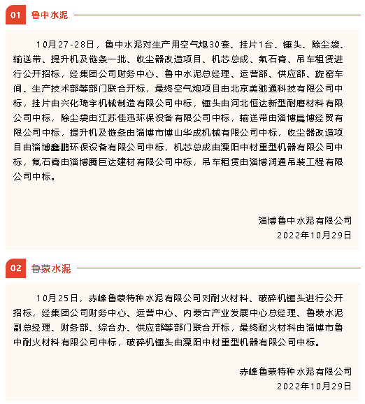 【中標公告】魯中水泥、魯蒙水泥、鵬峰化工