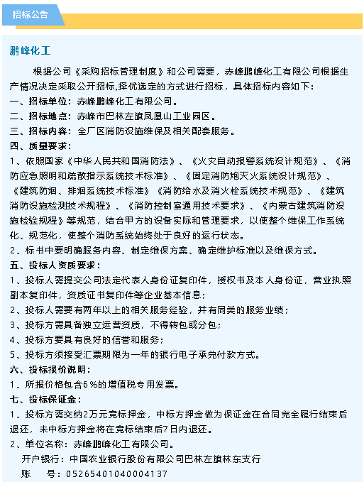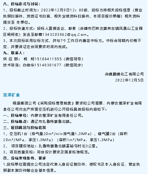 【招標(biāo)公告】鵬峰化工、螢澤礦業(yè)