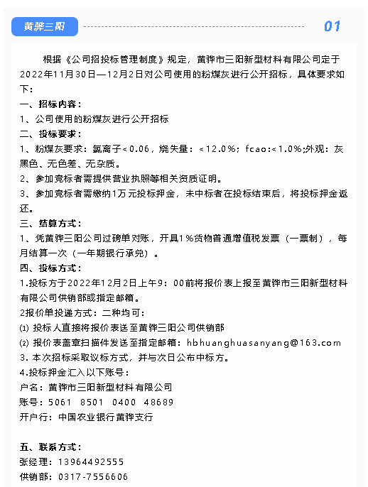 【招標(biāo)公告】黃驊三陽粉煤灰、爐渣招標(biāo)