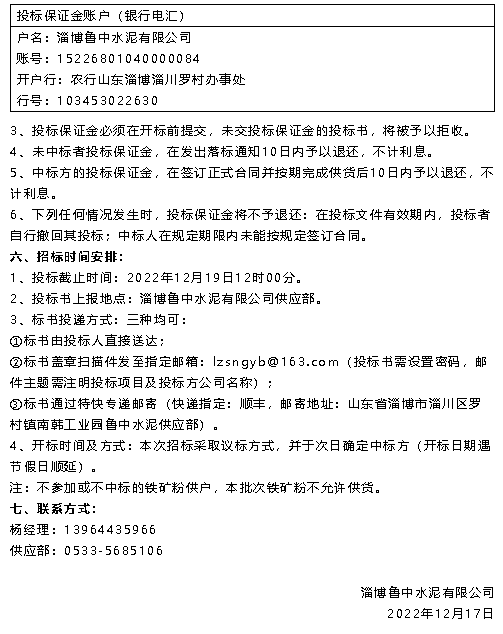 【招標(biāo)公告】魯中水泥鐵礦粉、電纜線招標(biāo)