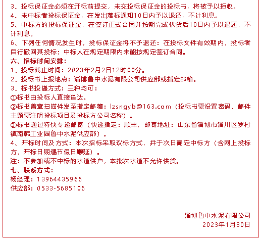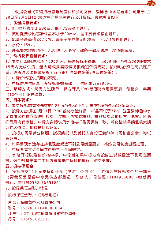 【招標(biāo)公告】魯中水泥