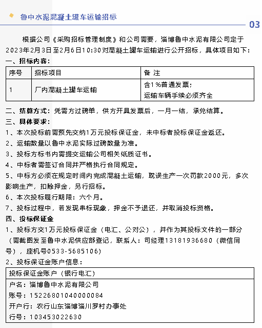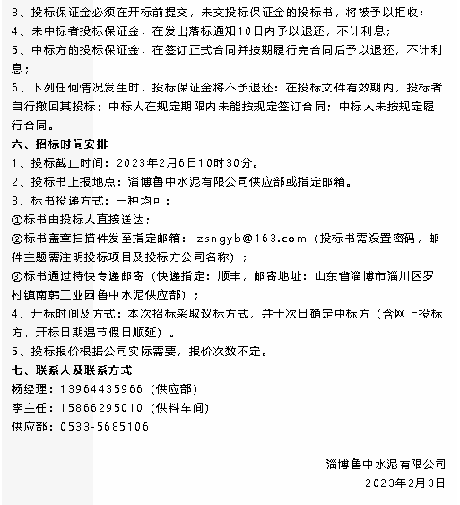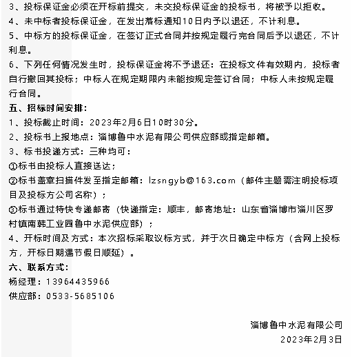 【招標(biāo)公告】黃驊三陽、魯中水泥