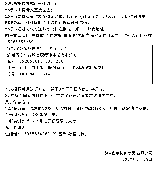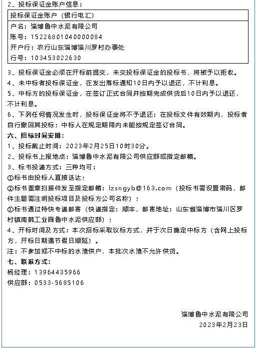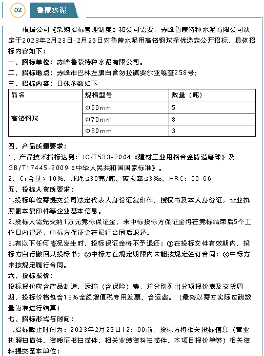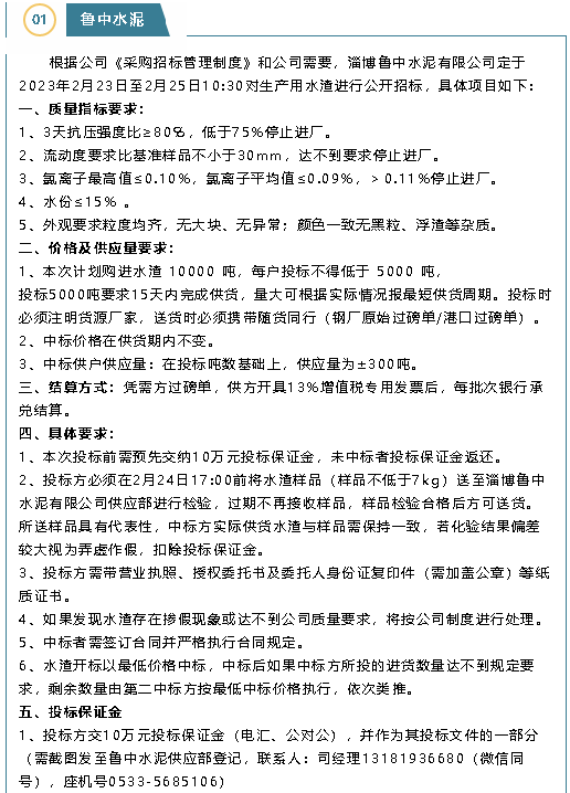 【招標公告】魯中水泥、魯蒙水泥