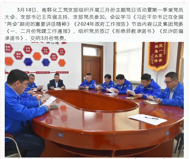 【黨建】南韓化工黨支部開(kāi)展三月份主題黨日活動(dòng)