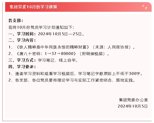 【通知】集團(tuán)黨委10月份學(xué)習(xí)通知