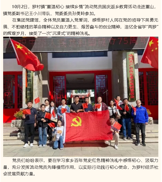 【黨建】鎮(zhèn)流動(dòng)黨員國(guó)慶返鄉(xiāng)教育活動(dòng)走進(jìn)重山
