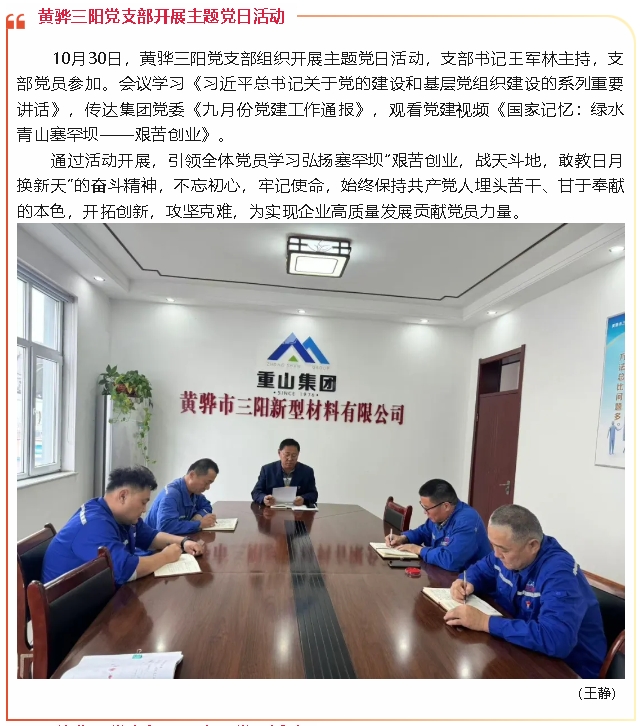 【黨建】黃驊三陽黨支部、鵬峰化工黨支部分別開展主題黨日活動