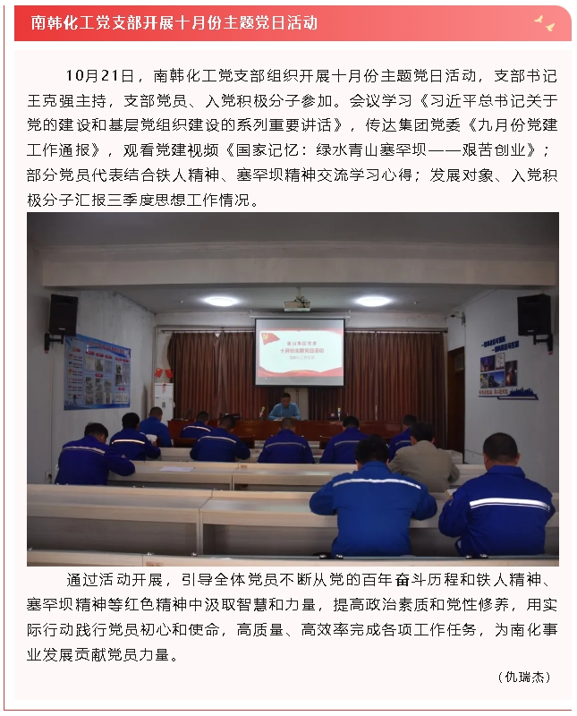 【黨建】南韓化工黨支部開展主題黨日活動、魯蒙水泥黨支部召開支委會