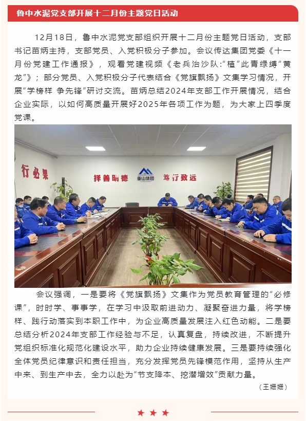 【黨建】魯中水泥黨支部召開支委會、開展主題黨日活動