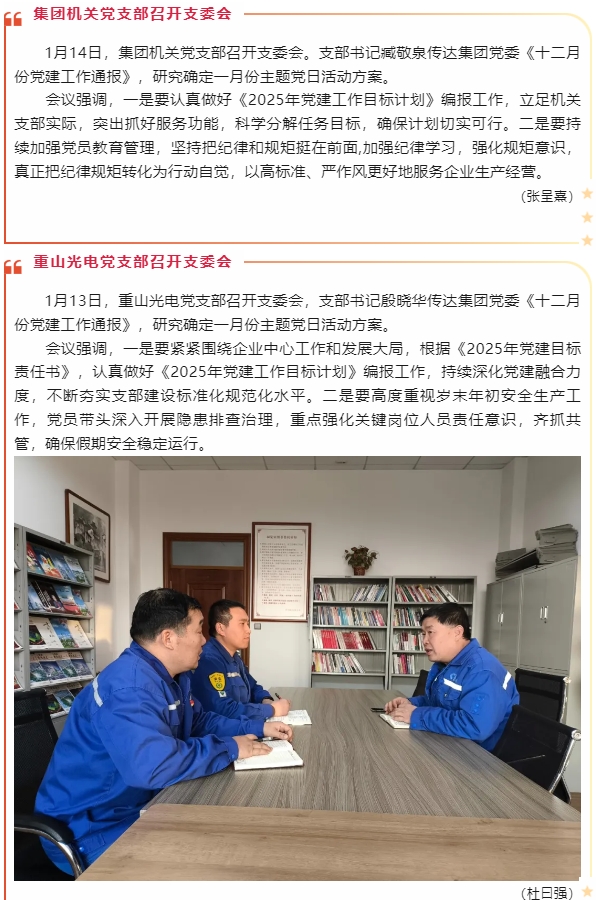 【黨建】集團(tuán)機(jī)關(guān)黨支部、重山光電黨支部、黃驊三陽(yáng)黨支部分別召開(kāi)支委會(huì)
