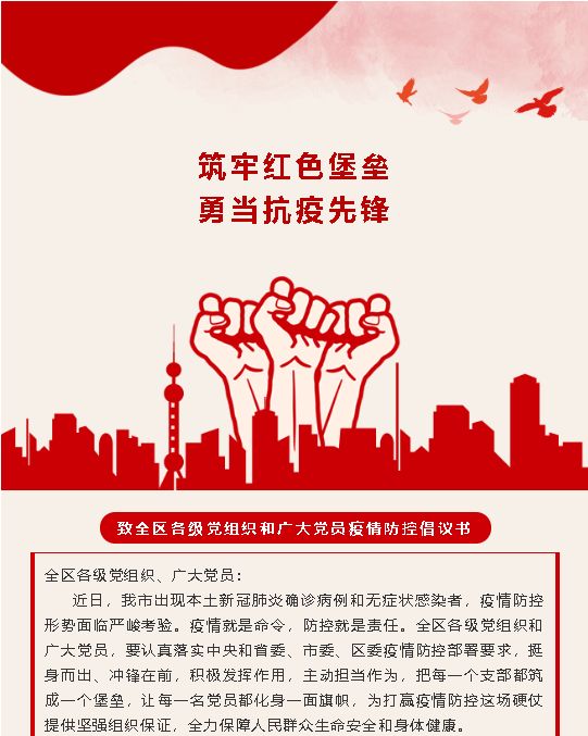 【倡議書】致全區(qū)各級(jí)黨組織和廣大黨員疫情防控倡議書
