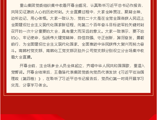 【喜迎二十大專欄】重山集團黨委組織集中收看黨的二十大開幕盛況