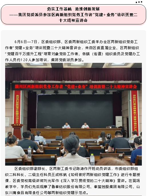 【黨建】夯實(shí)工作基礎(chǔ) 助推創(chuàng)新發(fā)展——集團(tuán)黨委派員參加區(qū)兩新組織黨務(wù)工作者“黨建+業(yè)務(wù)”培訓(xùn)班暨二十大精神宣講會(huì)