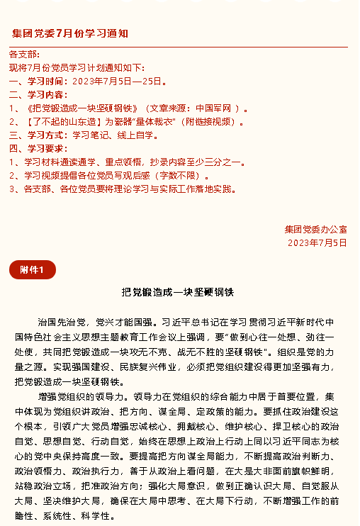 【通知】集團(tuán)黨委7月份學(xué)習(xí)通知