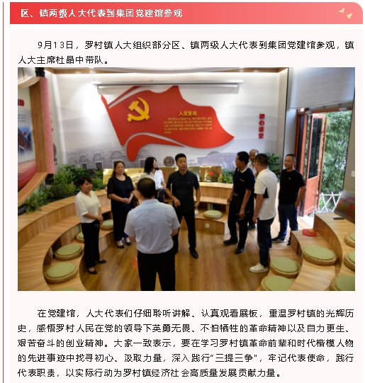 【黨建】區(qū)、鎮(zhèn)兩級人大代表到集團黨建館參觀、集團機關(guān)黨支部召開支委擴大會