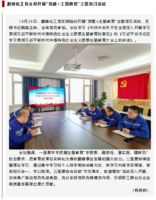 【黨建】黃驊三陽黨支部、鵬峰化工黨支部分別開展主題黨日活動